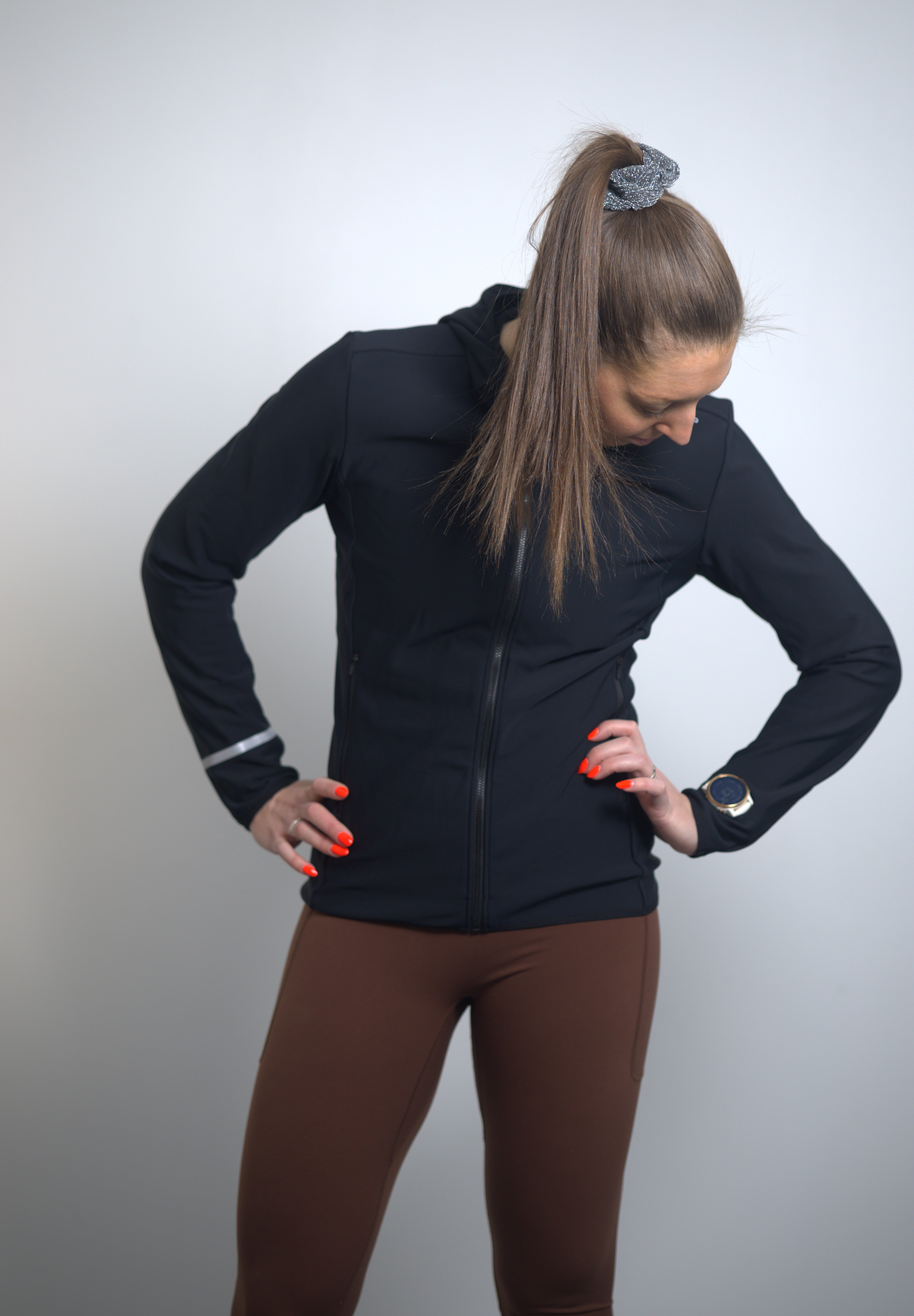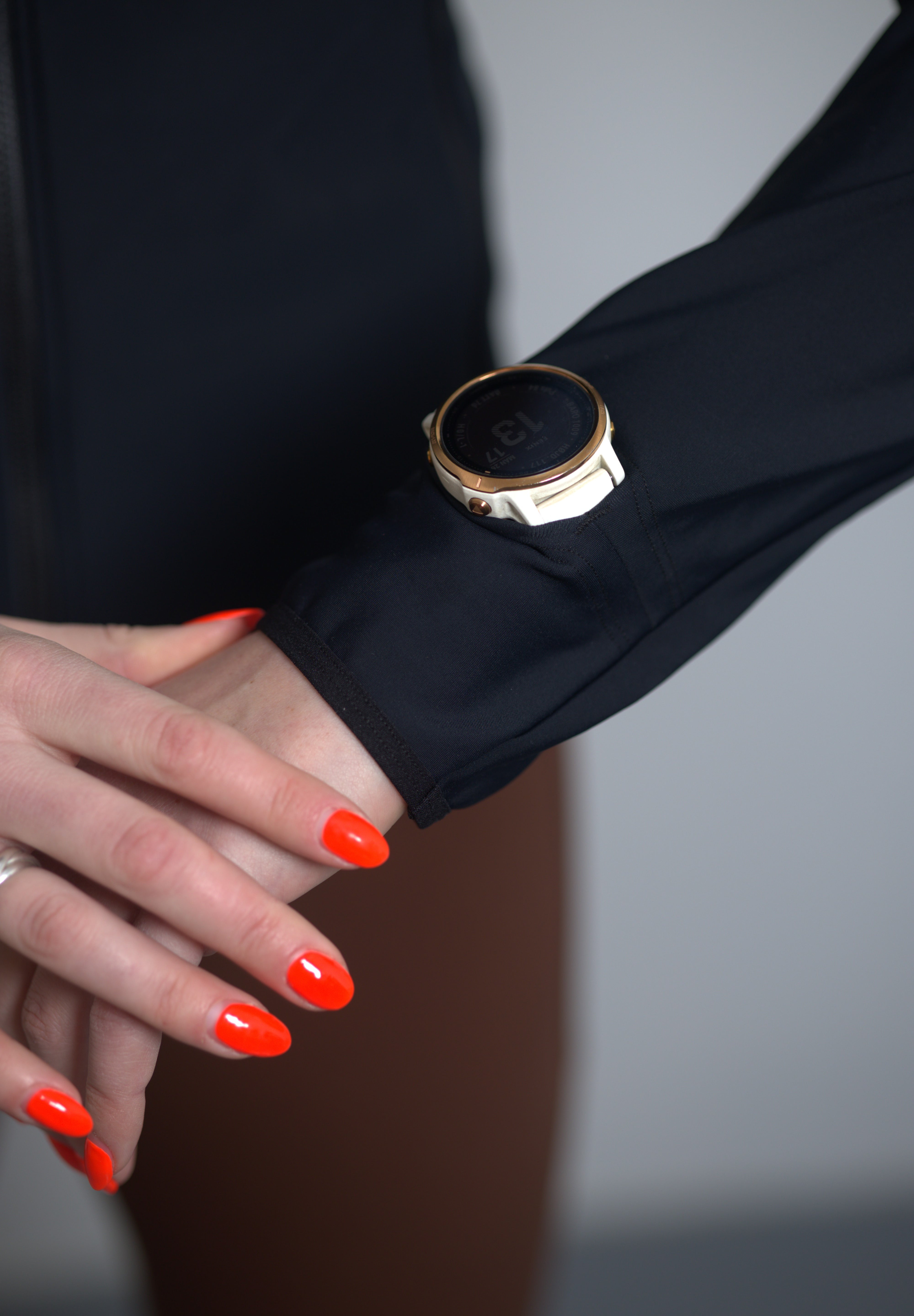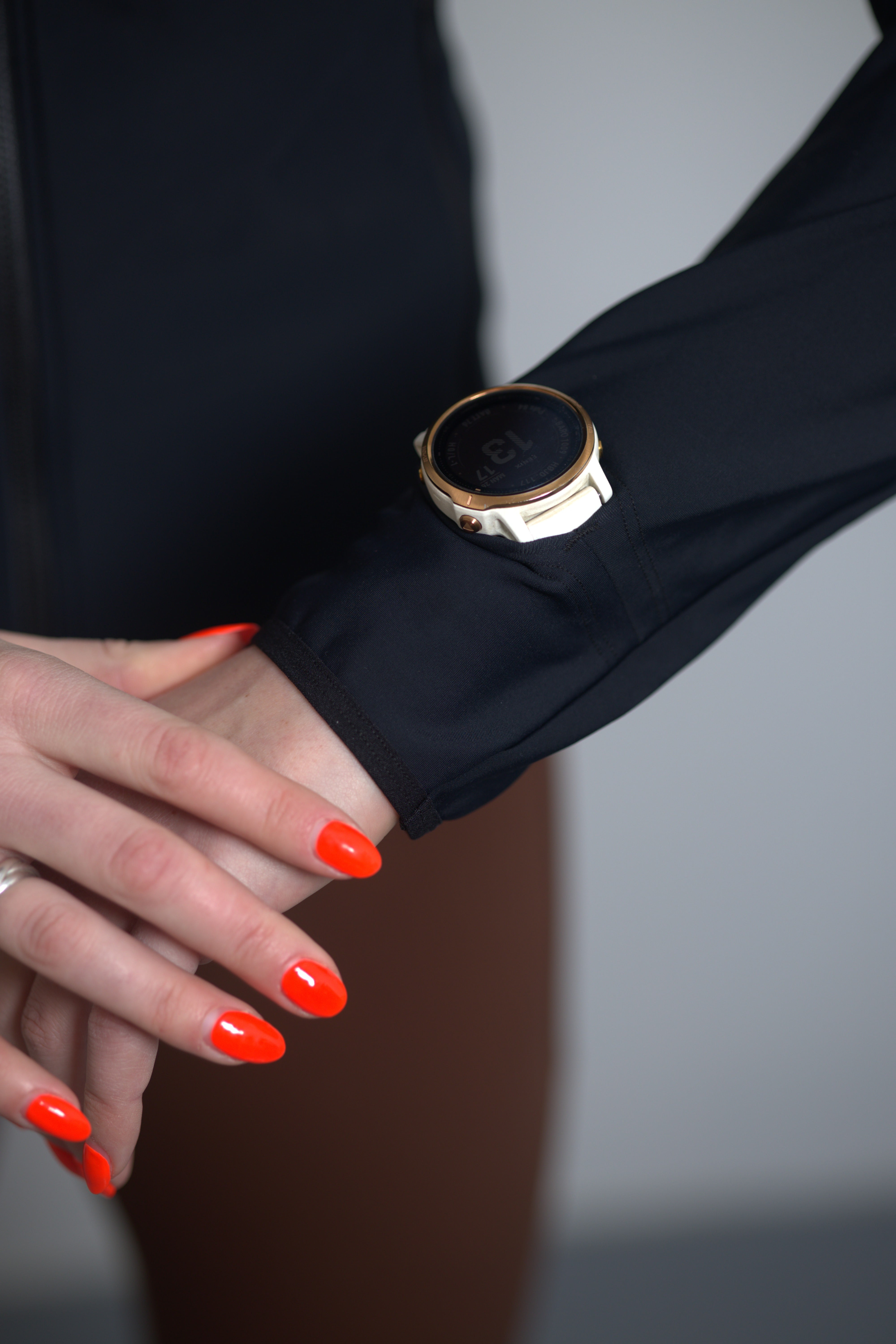 Sleeve opening designed so a running watch can be passed through easily