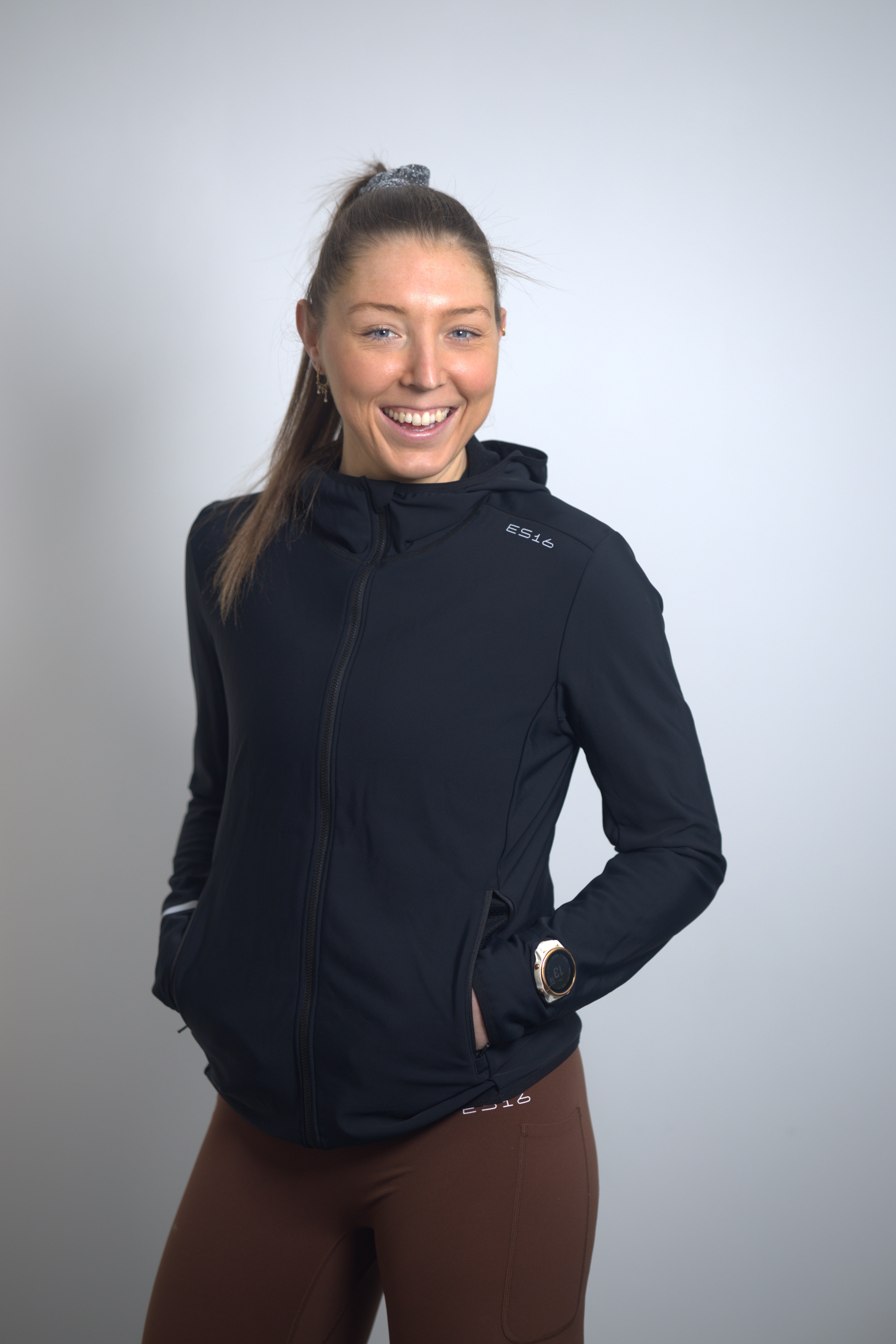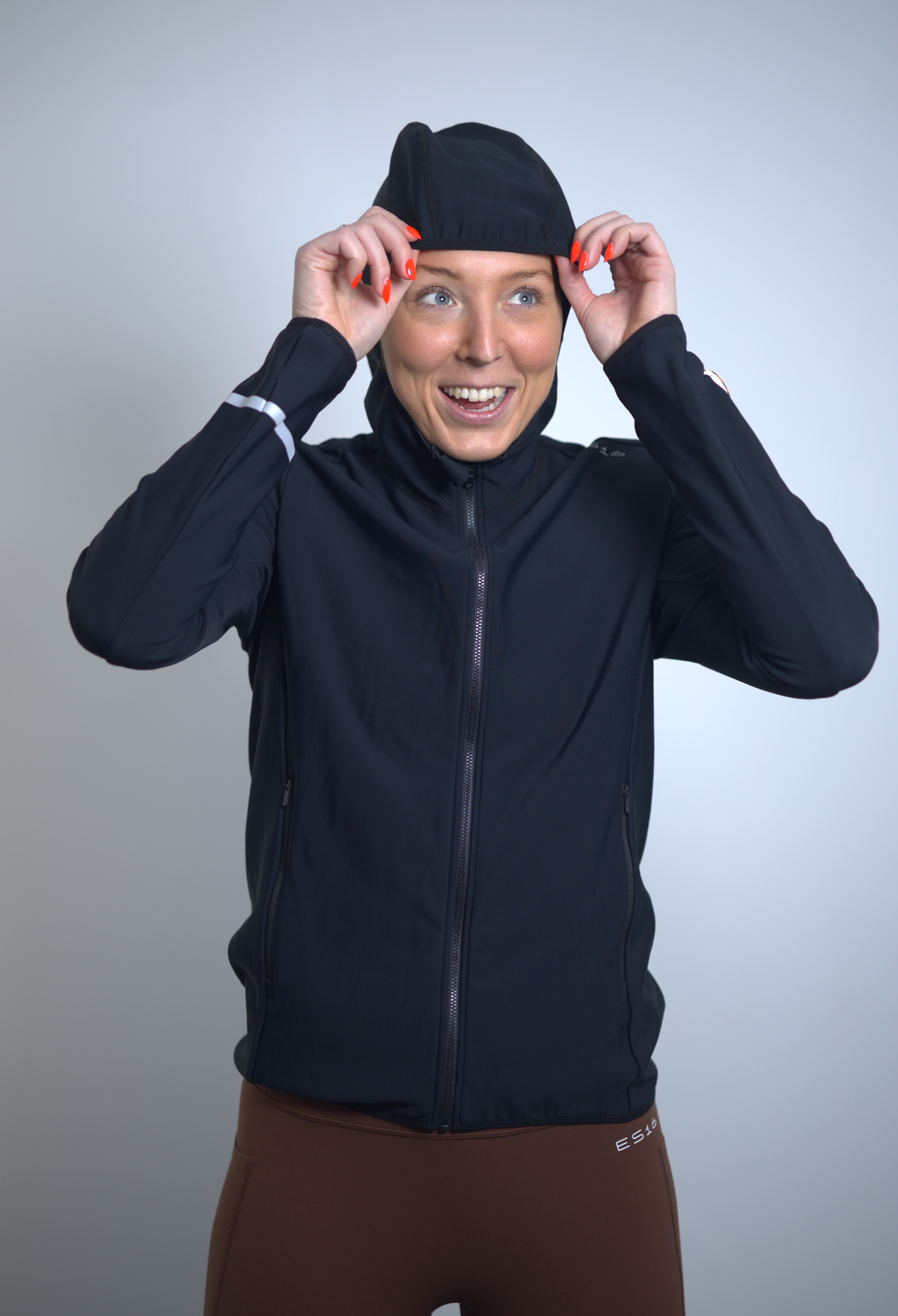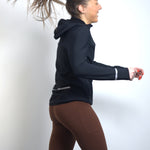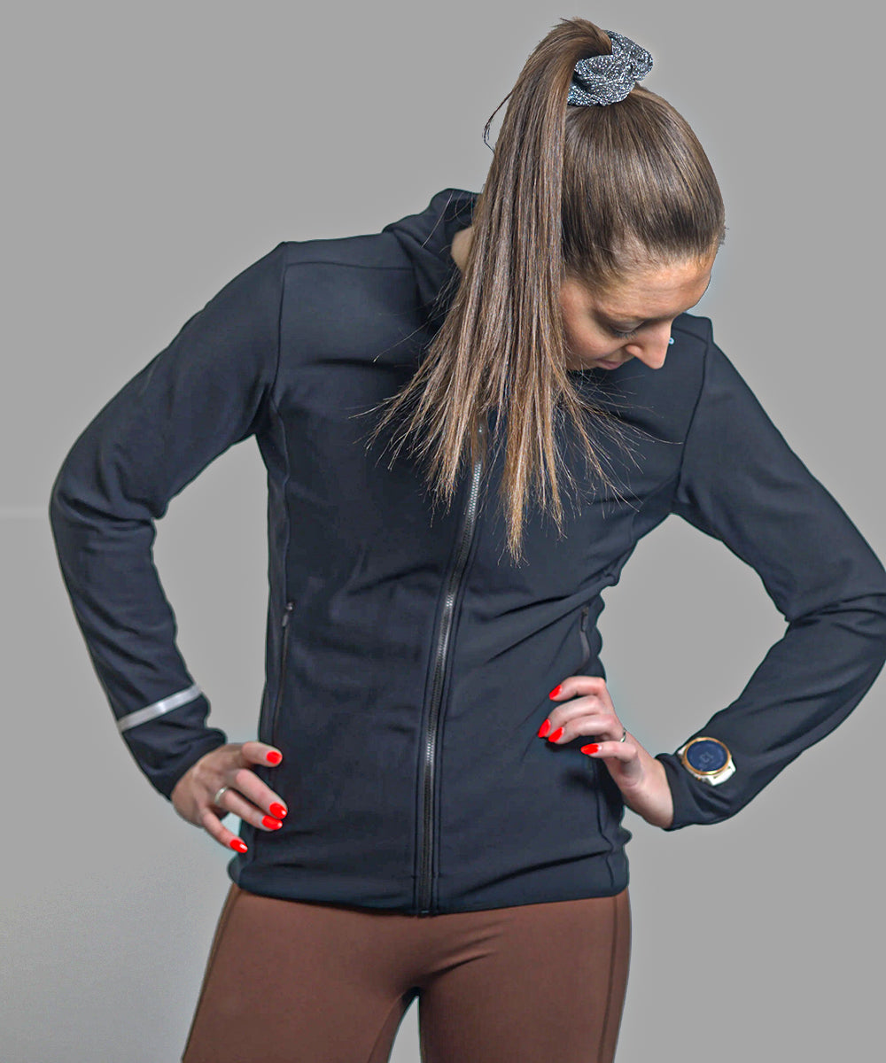 The integrated hood is fitted with elastic, so it stays securely in place while running in wind and cold and effectively protects against drafts around the head and ears. The zipper is wide, durable, and from YKK, with protection at the top for extra comfort.